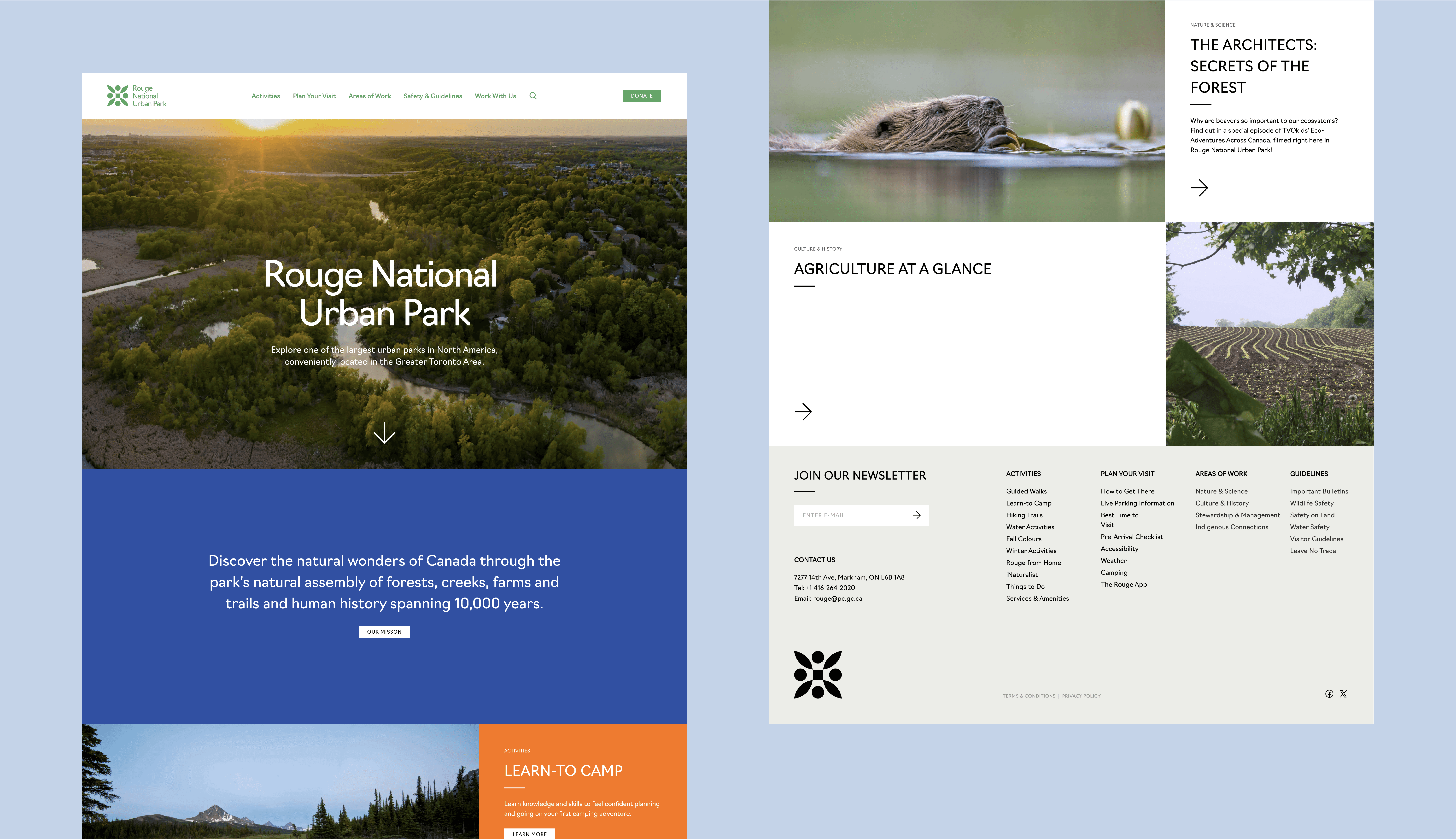 Rouge National Urban Park is a landmark urban park in Ontario, Canada, anchored by the Rouge River and rich in cultural and ecological history. Its work spans four areas: nature and science, culture and history, stewardship and management, and Indigenous communities, symbolised by the logo icon. As it advances efforts to nationalise and double the park’s size through expanded education and programming, the brand also seeks to embody a modern, welcoming, curious, grounded, and accessible identity.